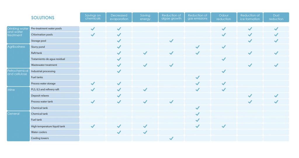 This modular floating cover system offers a wide range of solutions valid for a large number of productive sectors: industrial, agricultural, livestock, mining … It´s long life span, maintenance-free & fail-safe condition make it an insured investment.
